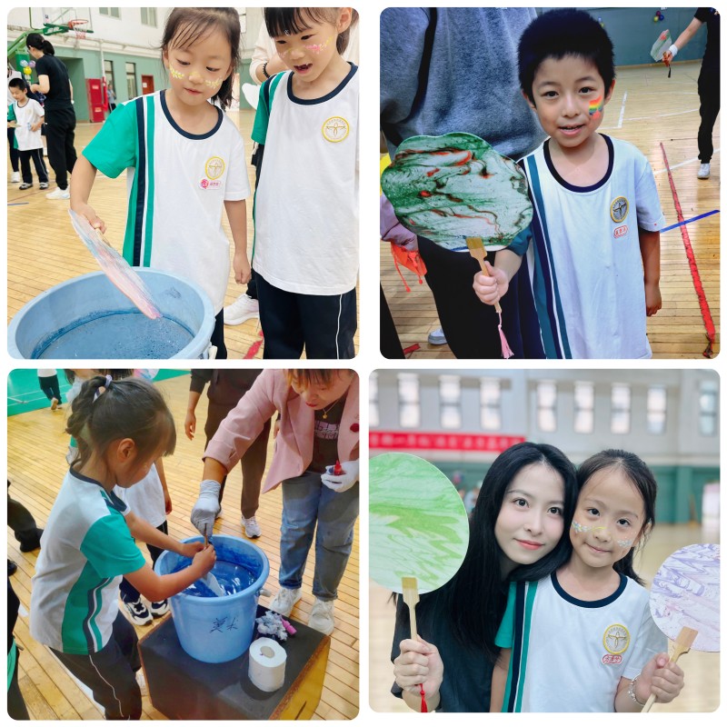 此外,漆扇制作环节也成为了本次活动的亮点之一。在美术老师专业手法的指导下,孩子们与家长拿着空白的扇面,小心翼翼地浸入彩色的漆水,一伸一转一倾斜,随着漆料的层层叠加,一幅幅生动的画面逐渐显现,仿佛是大自然赋予的魔法,让人惊叹不已。这一刻,孩子们不仅感受到了艺术的魅力,更激发了他们对新事物的好奇与探索欲,而家长们的陪伴与参与,也让这份成长的记忆更加珍贵与温馨。