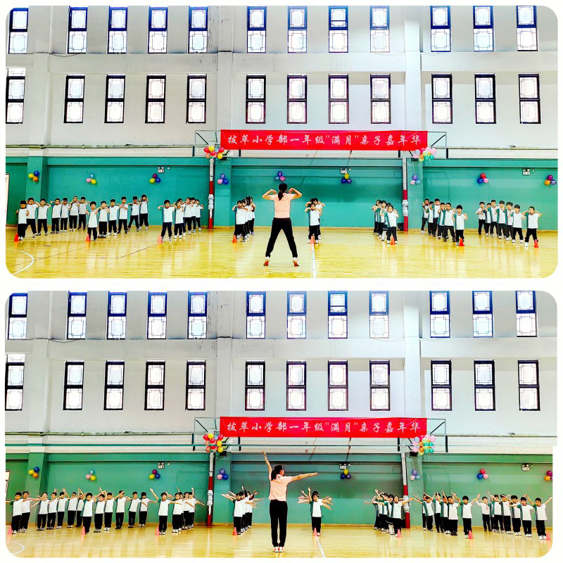 体育馆内,队列展示、国学手位操、热身操等节目轮番上演,孩子们用他们的热情与汗水,展现了良好的精神风貌和团结协作的精神。