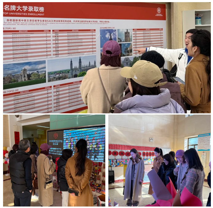 家长参观教学楼大厅,在学生美术作品前纷纷驻足,观看自己孩子的作品。看到荣誉墙上每年有大批精英从这里考入国内外名校,家长们纷纷表示,通过此次活动更全面地了解了学校的办学理念和课程设置,也因此对孩子未来初高中的校园生活产生了无限期待。