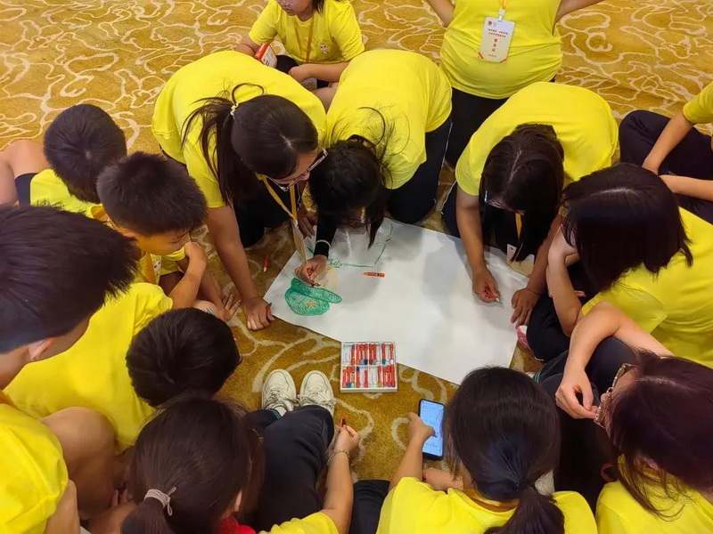 下午的三个模块的活动都是以营员们亲身参与的实践活动为主,在《急救技能培训》主题培训中,营员们学会了如何为伤员进行头部包扎和为骨折的手臂进行固定;在《法在我身边》安全自护飞行棋活动中,大家以做游戏的形式了解了更多关于法律法规方面的知识;在《以法为名,保护少年的我》普法自护小先锋活动中,我们的营员分成两组,各自商讨海报的绘制和宣传口号,大家齐心协力出色地完成各自的作品。