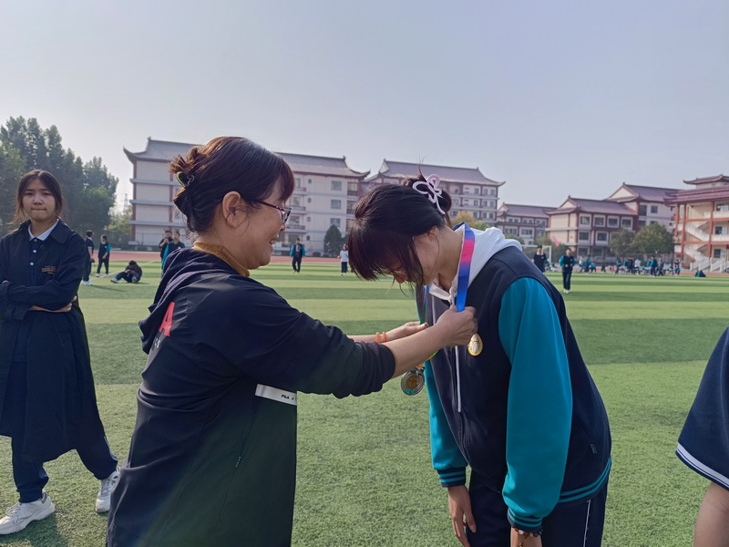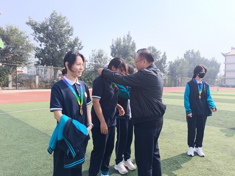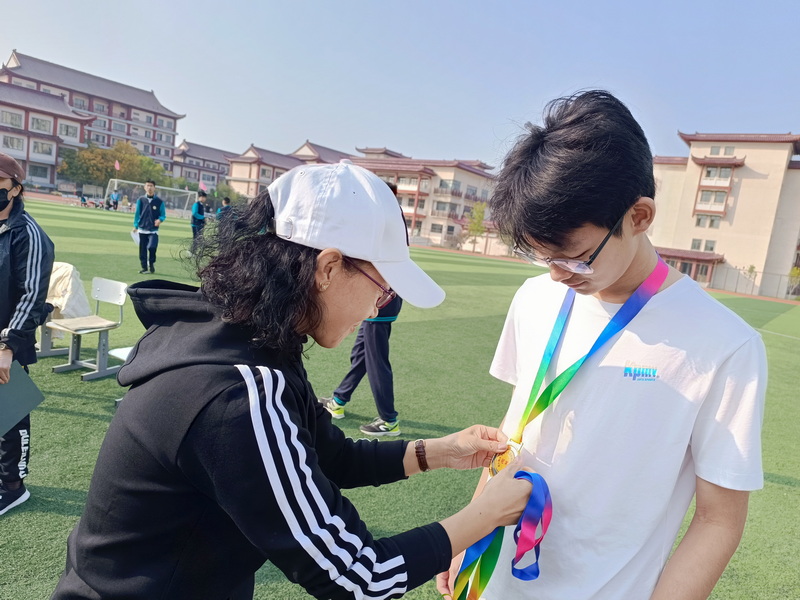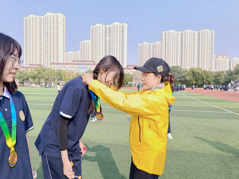 颁奖活动也在同步进行。当那块闪亮的奖牌被学部黄主任挂在同学的脖颈时,每一位同学都呈现出灿烂的青春笑脸,每一句鼓励、每一块奖牌都是青葱岁月最美的勋章。运动会上,高中学子用饱满的斗志、昂扬的姿态挑战自我,用精彩的表现、尽情地拼搏绽放芳华。