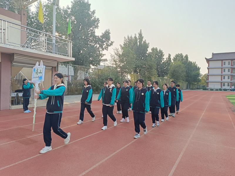 晴光万里,彩旗飘扬。10月12日上午7:30,高中部师生列队完毕,整装待发。