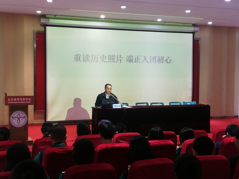 百年光辉岁月,百载风雨兼程。朝阳区思政中心副主任曾志伟老师以《重读历史照片,端正入团动机》为主题,为参加开班式的同学们进行了团课第一讲。用一张张鲜活的图片回顾了积贫积弱的旧中国带给人民的累累伤痕,战争带给世界儿童的伤害。曾主任希望拔萃的同学们勿忘国耻,珍惜当下,努力学习,砥砺前行,在中国式现代化前进的道路上肩负起自己应有的责任,做一名有理想、有本领、有担当的新时代好青年。