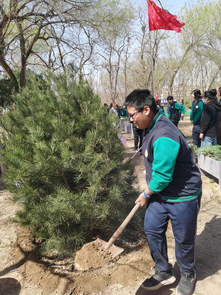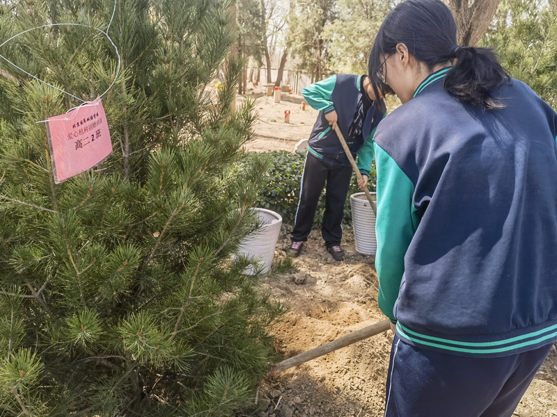 时当春光融融,眼尽草木青青。为表达对先烈的缅怀之情,高中全体同学积极捐款,每班购买一棵青松,为烈士陵园增添一抹绿色。黄主任为教师团队挂牌,并带领全体同学参与了植树活动。希望这里一年四季绿树长青,烈士精神永垂不朽。