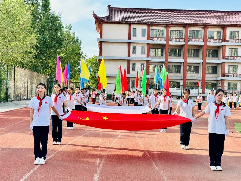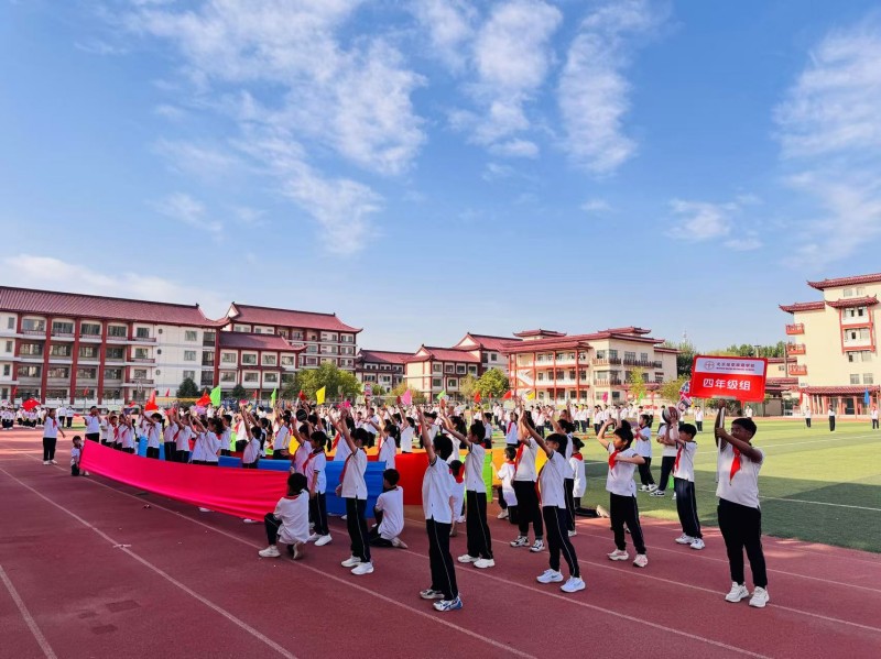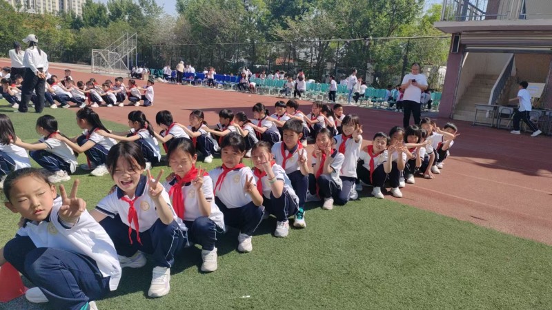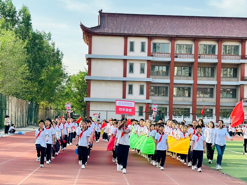 晨光熹微中,国旗护卫队踏着《运动员进行曲》的铿锵节拍率先入场,彩旗方阵紧随其后,斑斓旗帜如流动的虹霓,映照着孩子们雀跃的脸庞。轮滑队、滑板队、花环队气宇轩昂,无人机展演在空中盘旋成璀璨星环,科技感拉满,吸引着孩子们的视线。