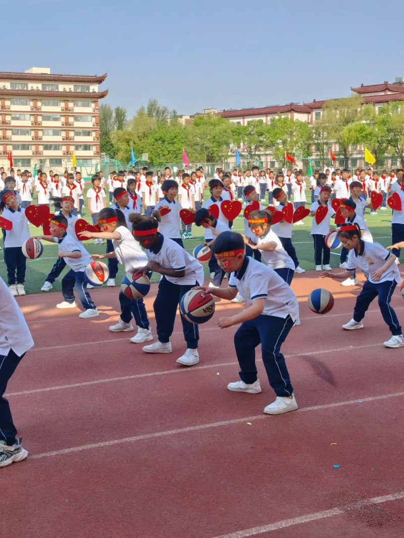 瞧,萌娃方阵更是别具一格。他们踏着欢快的节奏,彩色篮球在稚嫩掌心起舞。"砰砰"的击地声应和着《让我们荡起双桨》旋律,时而连成珍珠落玉盘般的急板,时而化作雨打芭蕉似的慢拍。当篮球在指尖旋转弹跳,瞬间点燃全场欢呼。