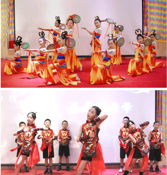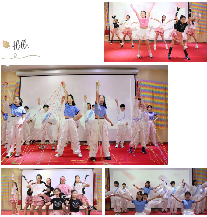 舞蹈俱乐部的《上铃鼓》,小舞者们如敦煌飞天般飘逸,让西域风情在当代舞台重焕生机。四年级 2 班的《中国话》则将汉语四声之美编织进舞蹈的韵律,中华文化的深邃底蕴以青春姿态款款走来。