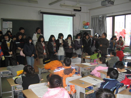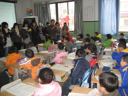 张锡华副校长向小学生们介绍来自异国他乡的同学