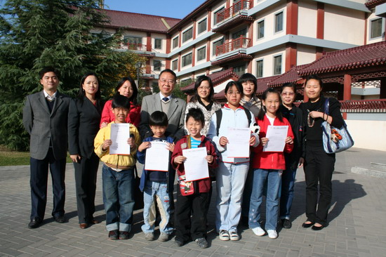 2009年10月22日上午9点,我校为来自泰国向日葵学校的短期留学生举行了结业典礼,蒋校长为他们颁发了结业证书,并代表学校欢迎他们以后有机会能再次来拔萃学习和生活。