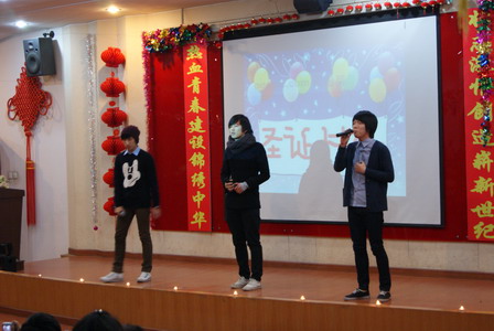 欢声笑语迎圣诞,中外师生庆佳节。2009年12月23日下午,学校图书馆三层报告厅喜气洋洋,国际部圣诞节联欢会在这里举行。万小平校长、蒋红霞副校长、张锡华副校长和国际部相关领导出席联欢会。