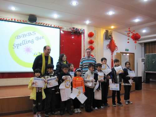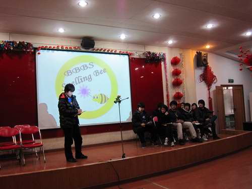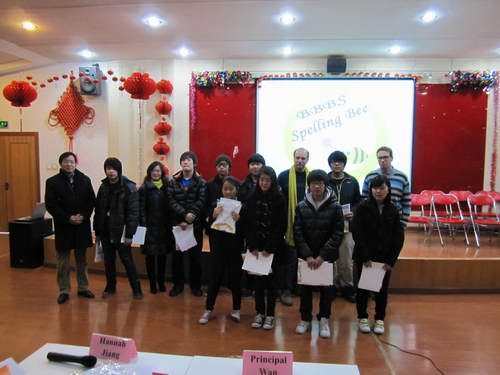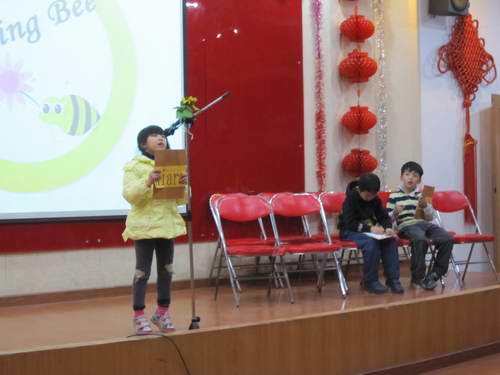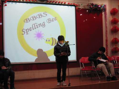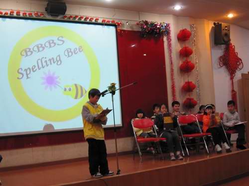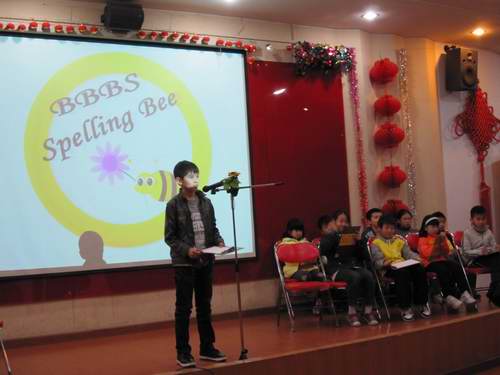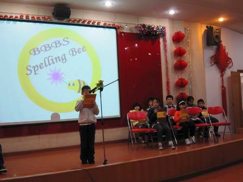 拔萃双语学校国际部第一届Spelling Bee经过组织、初赛和决赛,历经3个多星期,于12月15日落幕,取得了圆满的成功。这一天所有参赛选手和观众都身着“黄色”和“黑色”,在报告厅济济一堂。经过激烈角逐,中学组和小学组分别决出一、二、三等奖,获奖同学都获得了一份特别的奖品——印有本次大赛LOGO的T恤衫。