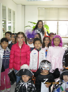 万圣节(Halloween)从西方传入中国,现如今已变成年轻人喜爱的化妆舞会,更是让孩子们又惊又喜的节日。今天一早,教室从里到外点点滴滴的布置,都是来自老师和孩子们的创意。再加上家长们提供的万圣节物品,让我们的教室充满浓浓的万圣节气氛。上午11点30分,在大家的期盼中万圣节活动准时开始,小学部的教室里走进来一群戴着小鬼面具,穿着公主,海盗服装,挑着南瓜灯,带着糖果袋的小学生们,他们已经迫不及待的要过万圣节了。