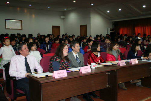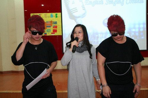 11月30日,国际部“英文歌曲比赛”在我校图书馆多媒体会议室举行,歌声飞扬,国际部全体学生、教师在这里欢聚一堂。
