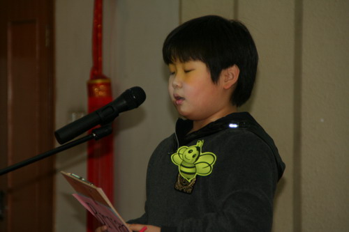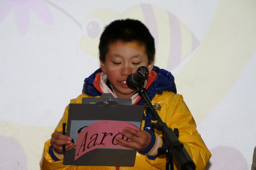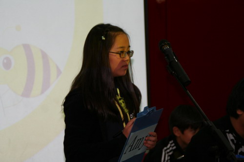 本届Spelling Bee比赛吸引了英语部众多中小学生参加。参赛选手们自10月份开始备赛,历经班级预赛才得以进入英语部决赛。本届大赛依次进行小学组和中学组比赛,各10名选手组成。最年轻的选手是小学组二年级的林可瑜,站在礼堂的舞台上,她自信地接受外籍考官的提问。其他小选手也不甘示弱,Alex不可多得的沉稳,Angela的激情四射,Bryan的机敏自信---纷纷把小学组比赛推向激动人心的高潮,观众席上异常安静,大家屏气凝神,紧张观赛,历经多轮角逐,最终Alex折得桂冠。
