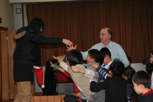 优美动人的舞姿、激情奔放的歌喉、诙谐幽默的表演,伴随着动感的音乐,将会场带进了一波又一波的高潮,场内还有装扮成圣诞老人的家长将一大包糖果和礼物发给同学们,使在场观众在这样的晚会中充分感受到了浓浓的圣诞气氛。