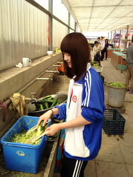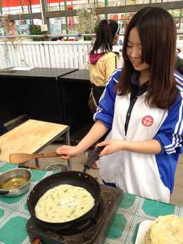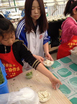 同学们分工合作,力图带给孩子们温暖和开心。有的同学和孩子们谈心、聊天、做游戏;有的同学为孩子们洗菜、洗碗、制作凉皮、摊煎饼;有的同学带领孩子们一起义卖水果,所得款项交给太阳村;还有的同学辅导孩子们功课,帮助他们学习进步。