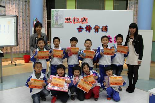 活动的最后一项是颁奖环节。经过激烈的竞争,获得本次诗歌背诵大赛特等奖的是双证班赵佳依同学。她以饱满的热情,熟练的背诵,清晰响亮的声音赢得了所有评委和师生的认可。另外,罗梓睿和孙喆鑫获得了诗歌背诵比赛的一等奖;赵姬媛、黄诗哲获得了二等奖,另有三名同学获得了本次比赛的三等奖,蒋校长亲自为以上同学颁发了奖状并亲切地鼓励每一位同学再接再厉!
