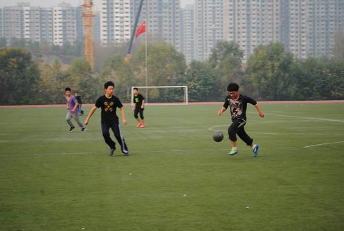 11月2日,天气转凉,但这丝毫没有影响同学们对足球赛的高涨热情。下午第一节下课,队员们便匆忙来到绿茵场加紧训练。