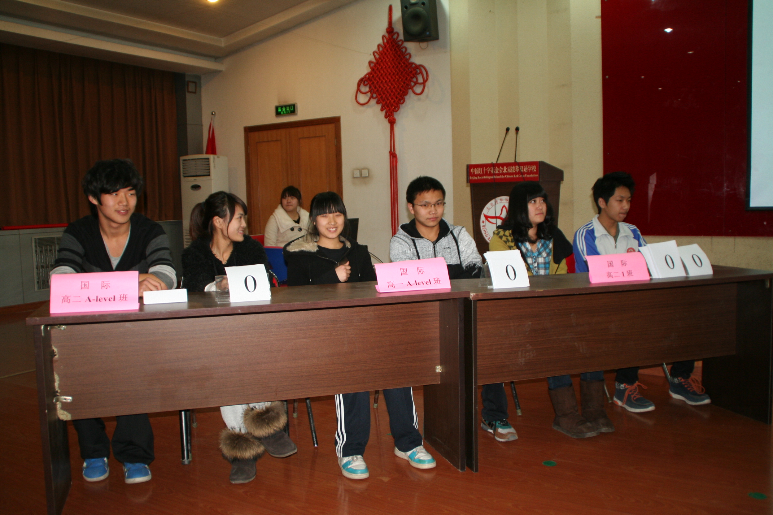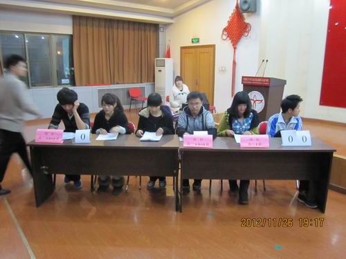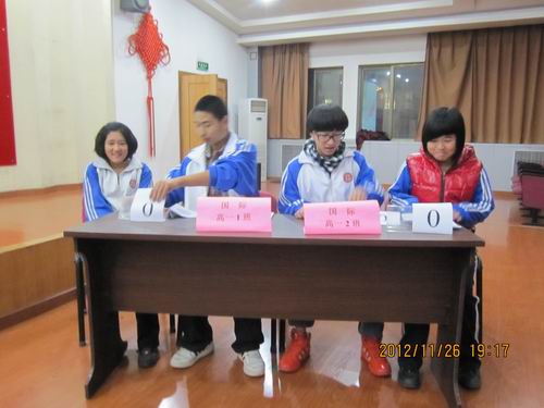 2012年11月26日晚上,我校国际部高中班全体同学利用晚自习时间进行了一场红十字知识竞赛。竞赛有五支队伍,每队由两名同学组成。