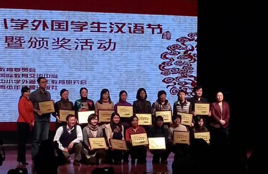 在此次活动中我校共有五位教师获得优秀辅导教师奖,我们的学校荣获优秀组织奖。其中的舞蹈《爱我中华》被邀请参加此次汉语节汇报演出暨颁奖活动的现场表演!