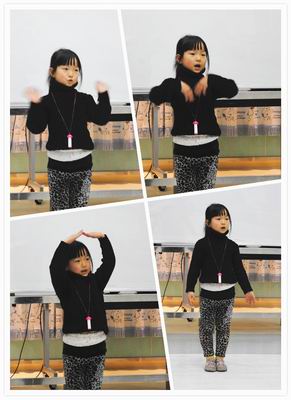 温颖彤同学是一名香港小朋友,来北京才三个多月,可是她的中文水平让你大吃一惊,看,她睁大眼睛,捏着鼻子学着大灰狼的声音哄骗小白兔,然后又学着小白兔机灵的语气应对着大灰狼的狡猾计谋,手臂情不自禁地挥舞着。同学们的表情随着她手臂的摆动不断地变化着,有时候凝重,有时候惊讶,有时候哈哈大笑,她模仿非常逼真,同学们向她投来敬佩的目光。