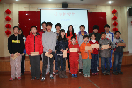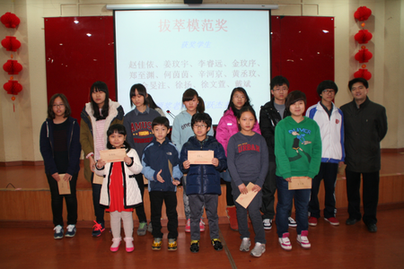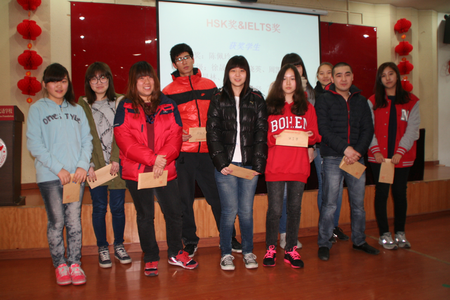 过去的一个学期里,国际部硕果累累、成效卓著。除了有“红十字”在行动、中华才艺大比拼、汉语节等丰富多彩的课外活动,更重要的是有学生们骄人可喜的学业成绩。继去年11月陈佩玲同学获得雅思6.5分的高分后,今年1月黄正同学又获得了雅思6分的好成绩!在HSK考试中,有8位同学获得了HSK六级的优异成绩,10位同学获得了HSK五级的好成绩!此次典礼上,蒋校长对上学期的这些表现突出者分别进行了表彰,奖项与获奖名单如下: