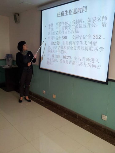 会上,黄主任首先阐述了做好生活区工作的重要意义。她指出,生活区的状态和教学区的质量是息息相关的,拥有良好的生活状态才能保证同学们的身心健康,才能使同学们在学业中积极向上。黄主任带着同学们逐条温习了国际部宿舍管理规定,并对大家的疑问给予了详细的解答。随后,黄主任重新明确了住宿生的作息时间安排,她强调,同学们课后的作息时间直接影响到课上的学习效率,因此,一定要养成良好的作息习惯。此外,黄主任还对住宿生生活区现存的一些问题进行了细致分析,要求大家惩前毖后、严格按规定将各项工作落到实处。最后,黄主任还向大家展示了一些优秀宿舍的照片,号召大家向这些模范学习。会上,全体师生细心聆听,认真记录,纷纷表示要在新的学期展示出生活区新的面貌。