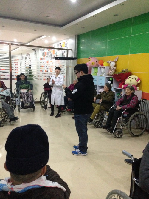 老人们和同学们一起度过了愉快的一天。活动最后,同学们在医院里与护士及老人们合影留念。