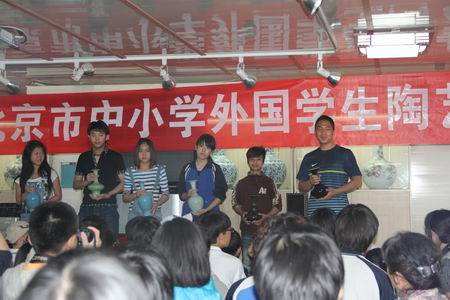 这次活动吸引了北京多所中小学近300名留学生参加。活动一开始,专家们向大家介绍了有关的中国陶艺文化知识;一番细致的讲解后,大家对于中国古老、传统的陶艺有了一些认识。随后,大家观看了陶艺师傅们制作泥塑和彩绘的全过程。拉坯、泥条盘筑、捏塑、彩绘……一眨眼的功夫,一块普普通通的泥土在陶艺师傅手中就变身为形态各异、精致美丽的陶器。大家目不转睛地盯着陶艺师傅们的手,不断爆发出掌声和欢呼声。很多同学都按捺不住,跃跃欲试。接着,聪慧的同学们就开始运用刚刚学来的陶艺技术和超强的想象力制作起自己的作品。每个人都全神贯注、非常投入。最后,我校国际部小五班阿塞拜疆学生萨米尔与小六班美国学生蔡凯琳的作品获得了三等奖,小六班的哈萨克斯坦学生安娜丽娅的作品则获得了大赛的一等奖!