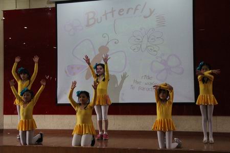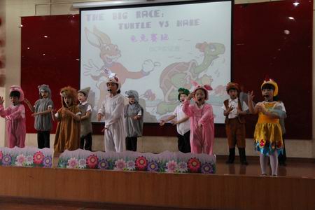 小6班的舞蹈《爱我中华》为整台演出拉开了帷幕;双证班小演员们的舞蹈《Hahaha Song》节奏欢快,表演精彩;小5班的歌曲《Good time》引人入胜、十分动听;英文短剧《Tortoise VS Hare》(龟兔赛跑)给家长们留下极其深刻的印象,同学们通过熟练、诙谐的英语和夸张、生动的表演让大家捧腹连连,掌声不断;小1、2、3班的民族舞串烧《大中国》更加推进了节日的喜庆氛围;小4班的舞蹈《Happy Baby》凸现了孩子们热情四射、积极向上的青春活力;《踢踏舞》的教学展示更是把整台演出推向高潮,现场的喝彩声此起彼伏、热烈的掌声如雷贯耳。