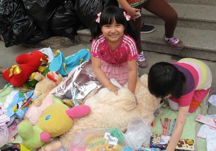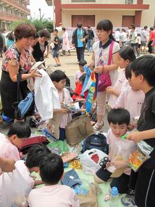 “走过路过不要错过啊,便宜卖了,便宜卖了!”同学们摇身一变,一下子成了经验丰富的售货员和推销员,“您看,这个东西真不贵,而且,这不也是献爱心吗?”操场上的吆喝声不绝于耳,为吸引“顾客”们的注意,同学们不惜使出各种招数;不仅令义卖场上人气大增,更让我们深深的感动!