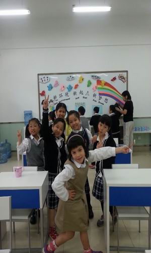 新环境,新起点,新梦想;孩子们喜悦的笑脸传达出“我爱我们班”的心意。