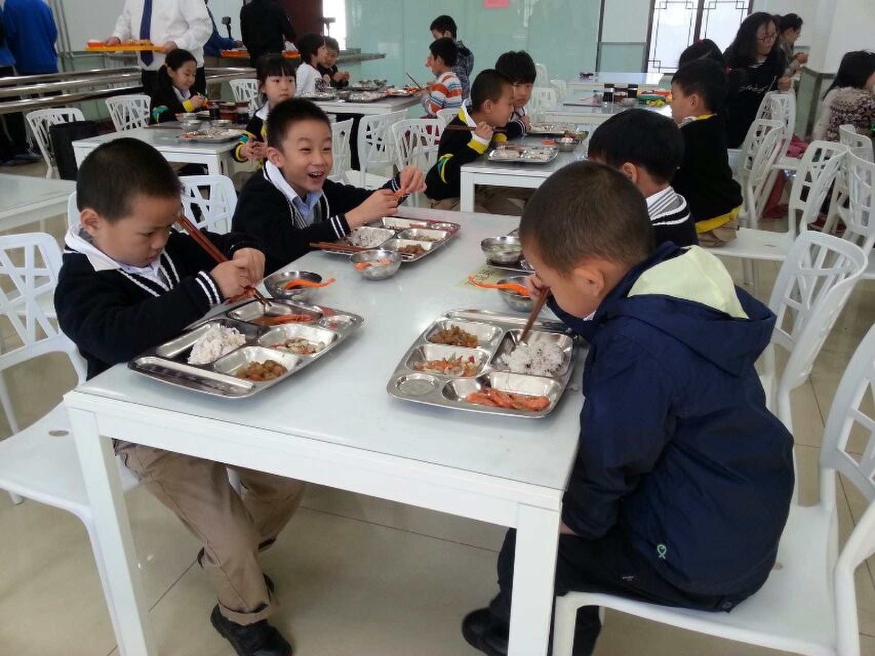 在国际部的新食堂里,我们双证班的小朋友们吃出了健康,吃出了欢乐。