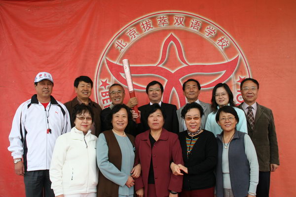 校领导和08奥运火炬合影
