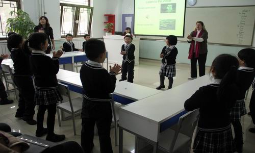 本次开放日中,我国际部展示了富有双证书班特色的一系列课程。语文展示课上,同学们在杜老师的带领下吟诵了优美的中国古诗,并展开了成语接龙的大比拼。无论是用来勉励自己的《长歌行》,抒发母爱之情的《游子吟》,还是追求进取精神的《石灰吟》,孩子们都吟诵得抑扬顿挫、饱含深情。整齐洪亮、此起彼伏的成语接龙环节,更是充分体现出孩子们扎实牢固的国学知识功底。