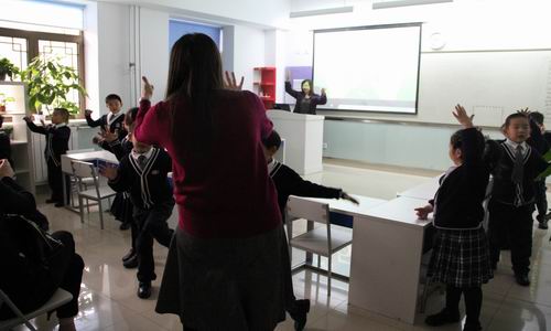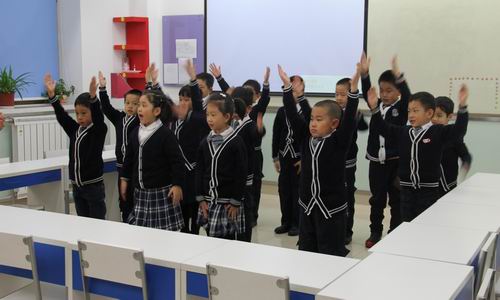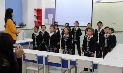 音乐展示课上,同学们用中英文双语演唱了《小星星》这首歌,并配上了活泼、生动的动作,充分体现出双证书班双语教学的特点。每个孩子的脸上都洋溢着真挚的笑容,这份快乐也感染了现场所有的观众。