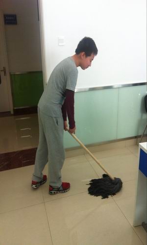 会议结束后,同学们拿起扫帚、拎起拖把、洗净抹布,准备大干一场。11月的寒冷天气被大家热火朝天的激情所点燃,瞬间教室里爱意浓浓、暖意融融!不到半个小时的功夫,整间教室,大到黑板、墙面、桌椅,小到各个死角,全都亮洁如新,一尘不染!老师们不由得慨叹:学生的潜力是无穷的,保洁的任务更是无止境的。
