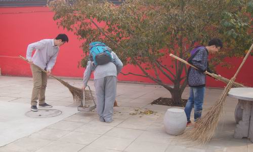 虽然正值深秋,天气寒冷,但是同学们热情洋溢,激动万分。在工作人员的带领下,我们首先对敬老院进行了清扫。一番热火朝天的努力后,敬老院里明亮整洁、焕然一新。